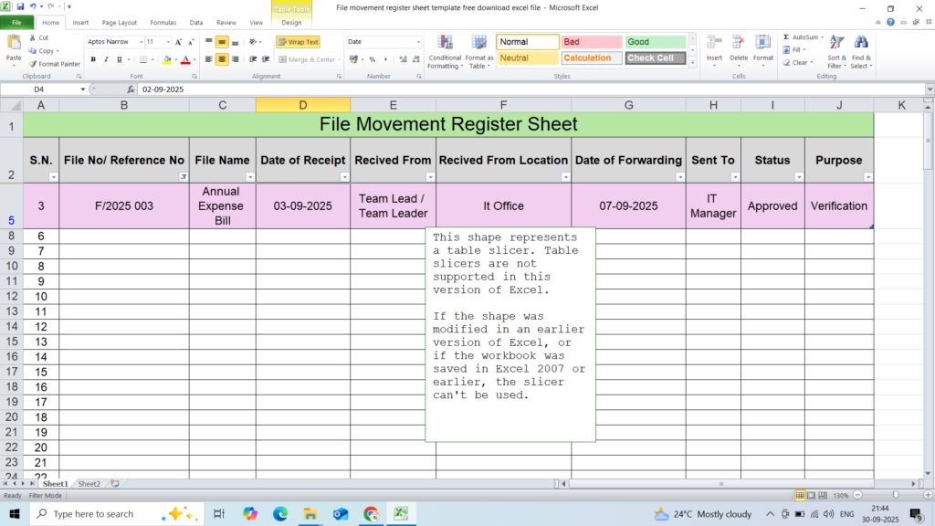 File movement register sheet template free download excel file & pdf file September 30, 2025 by PRAMODFile movement register sheet template free download PDF fileDownloadFile movement register sheet template free download Excel fileDownloadSpread the love