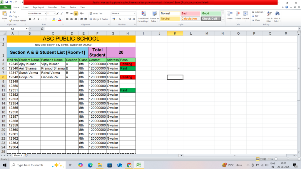 Free students section wise seating plan template download August 27, 2025August 23, 2025 by PRAMODSection wise seating plane in school free pdf template downloadDownloadSection wise seating plane in school free excel template downloadDownloadSpread the love