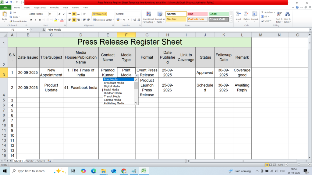 Press Release Register Sheet Template free Download Excel File & Pdf file October 31, 2025 by PRAMODPress Release Register Sheet Template free download excel fileDownloadPress Release Register Sheet Template free download excel fileDownloadSpread the love