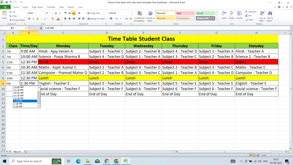 School time table with class excel template free download September 5, 2025 by PRAMODSchool time table with class excel template free downloadDownloadSpread the love
