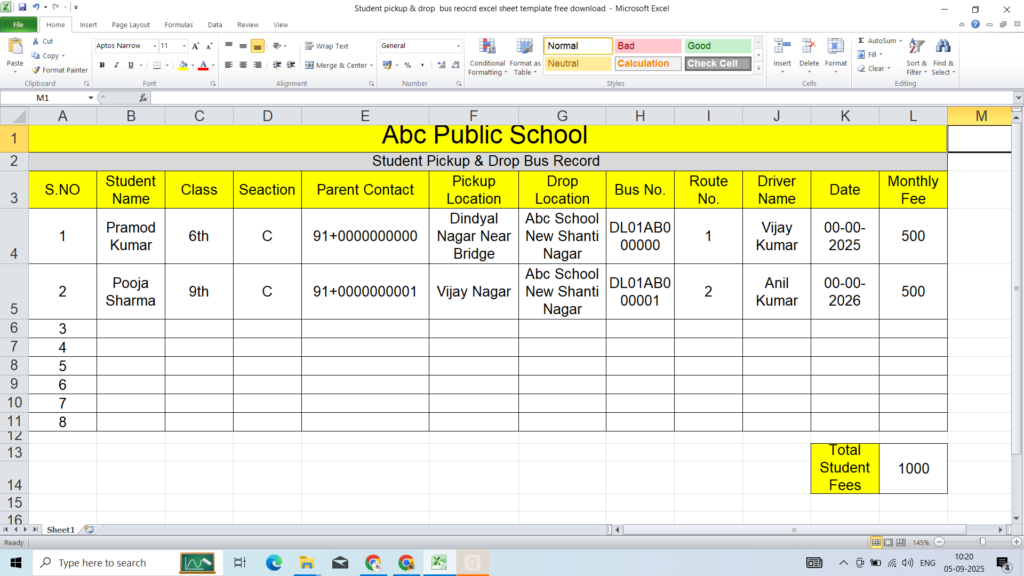 Student pickup & drop bus record template free download September 5, 2025 by PRAMODStudent pickup & drop bus record pdf file template free downloadDownloadStudent pickup & drop bus record excel sheet template free downloadDownloadSpread the love