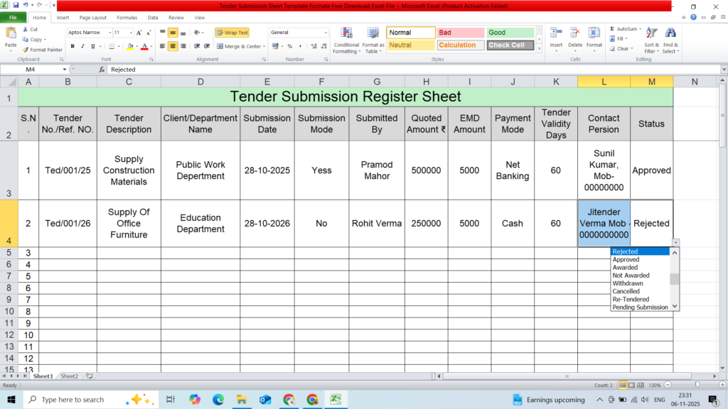 Tender Submission Sheet Template Formate Free Download Excel File & PDF File November 6, 2025 by PRAMODTender Submission Sheet Template Format Free Download PDF FileDownloadTender Submission Sheet Template Format Free Download Excel FileDownloadSpread the love
