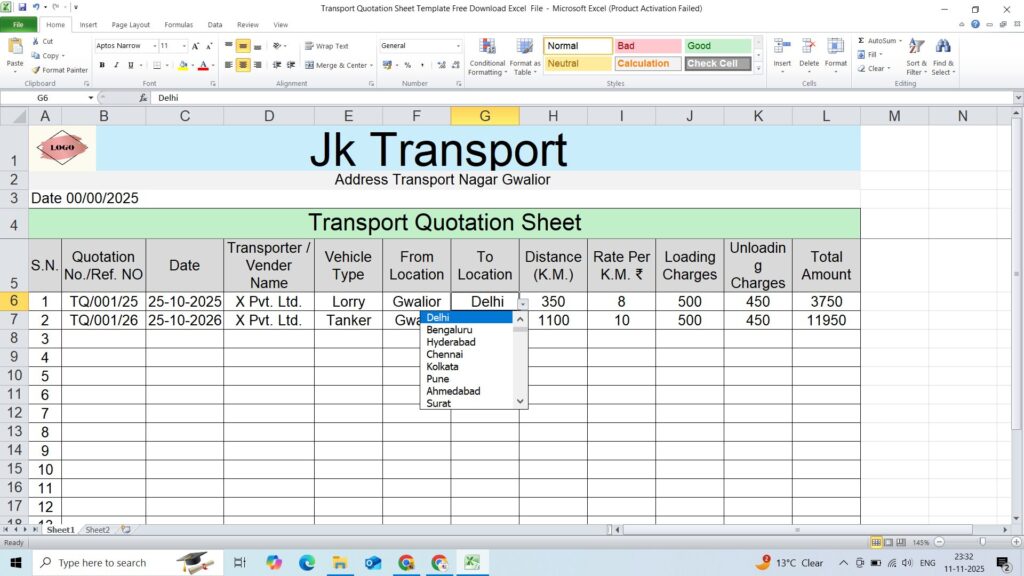 Transport Quotation Sheet Template Free Download Excel File & PDF File November 11, 2025 by PRAMODTransport Quotation Sheet Template Free Download PDF FileDownloadTransport Quotation Sheet Template Free Download Excel FileDownloadSpread the love
